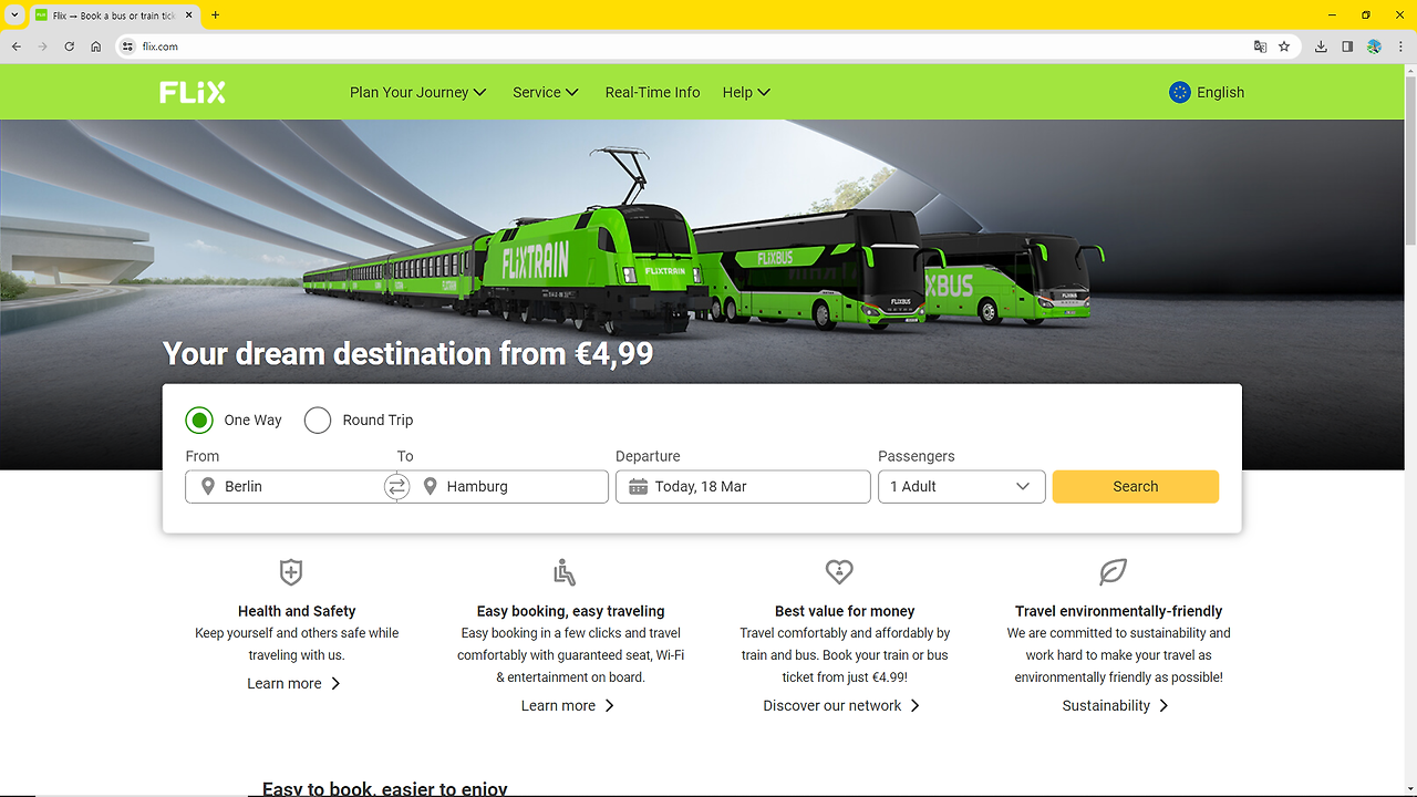 플릭스 홈페이지 - 플릭스버스와 플릭스트레인을 운영한다