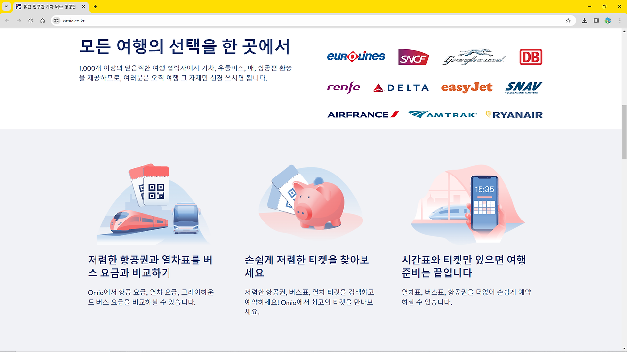 오미오 홈페이지 - 유럽과 북미의 다양한 운송 회사 및 플랫폼과 협력하고 있다