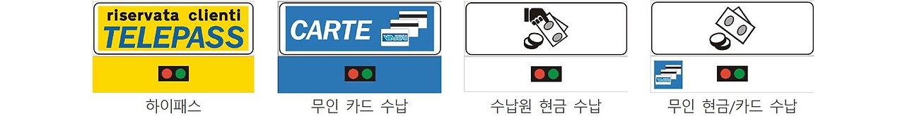 이탈리아 고속도로 톨게이트의 요금 수납 관련 아이콘