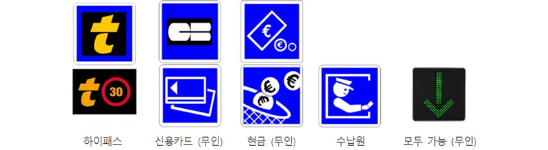 프랑스 고속도로 톨게이트의 요금 수납 관련 아이콘