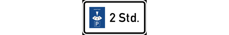 주차 디스크와 무료 주차 시간이 표시된 주차 안내판