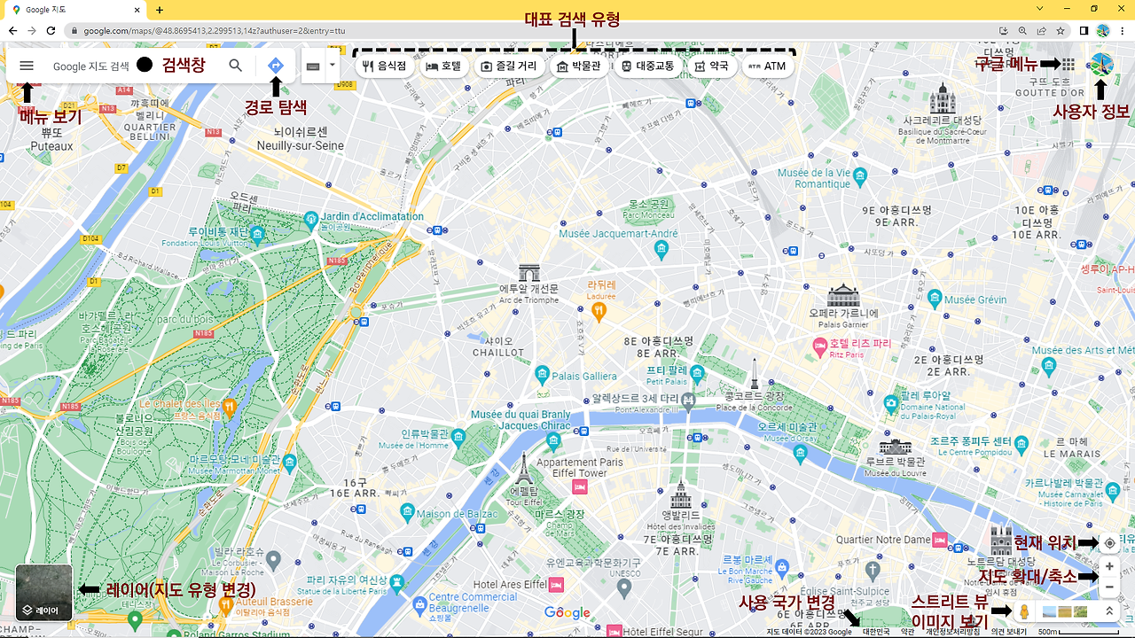 구글지도 데스크톱 버전의 기본 화면