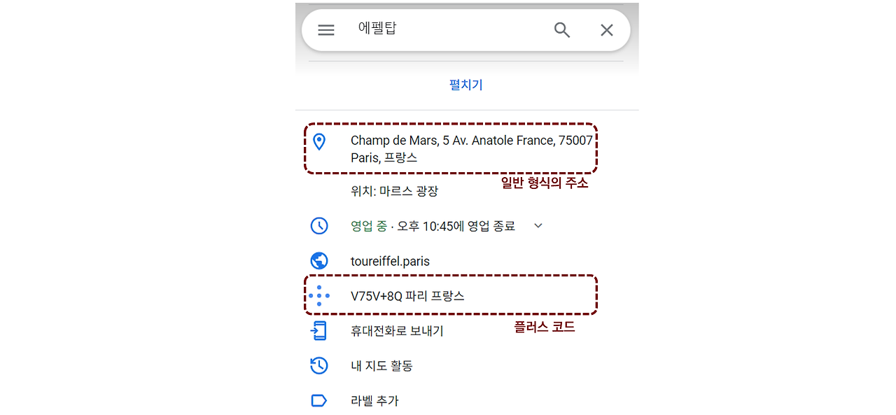 구글지도에서 에펠탑 주소 표기 방식