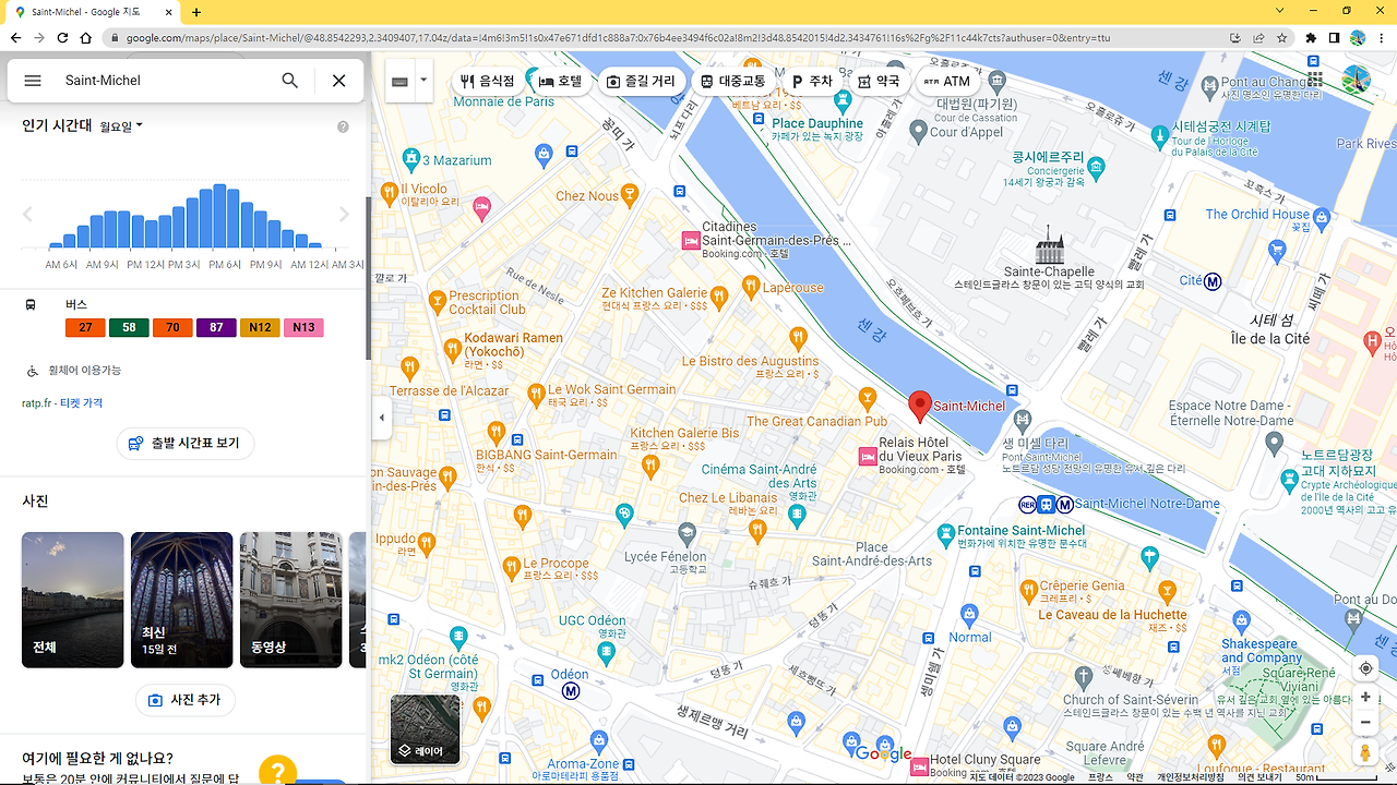 구글지도 데스크톱 버전에서 철도역(위)과 버스 승차장(아래)을 선택한 결과