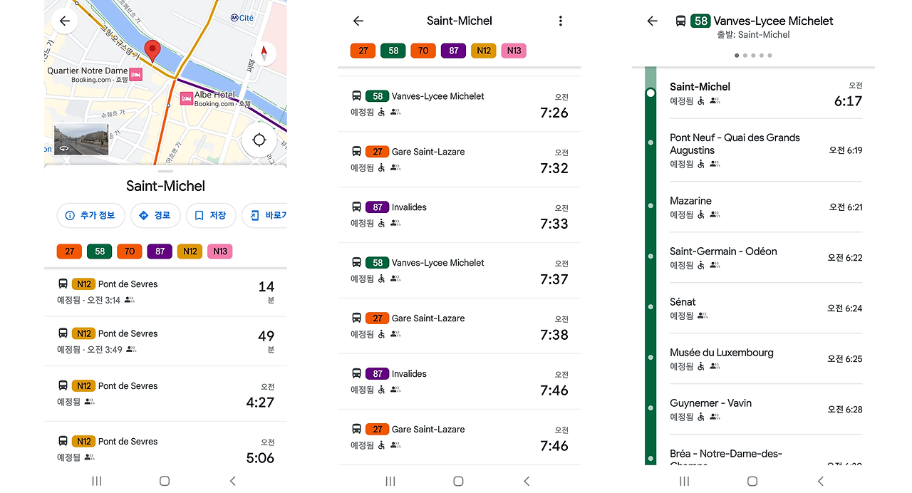 구글지도 모바일 버전에서 버스 승차장을 선택한 결과 - 운행 정보