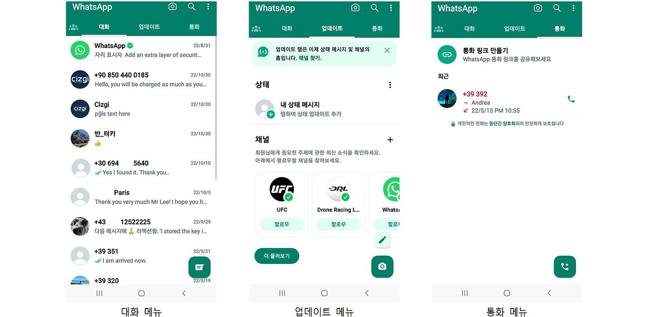 Whatsapp의 주요 화면
