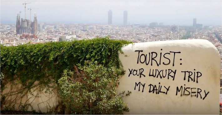 바르셀로나 벙커의 오버투어리즘 반대 그라피티