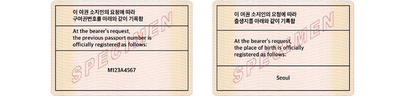 대한민국 여권 추가 기재 사항의 예시