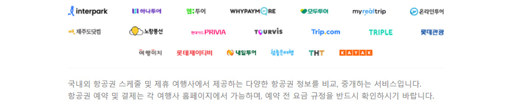 네이버 항공권의 파트너 회사들(홈페이지 캡처)
