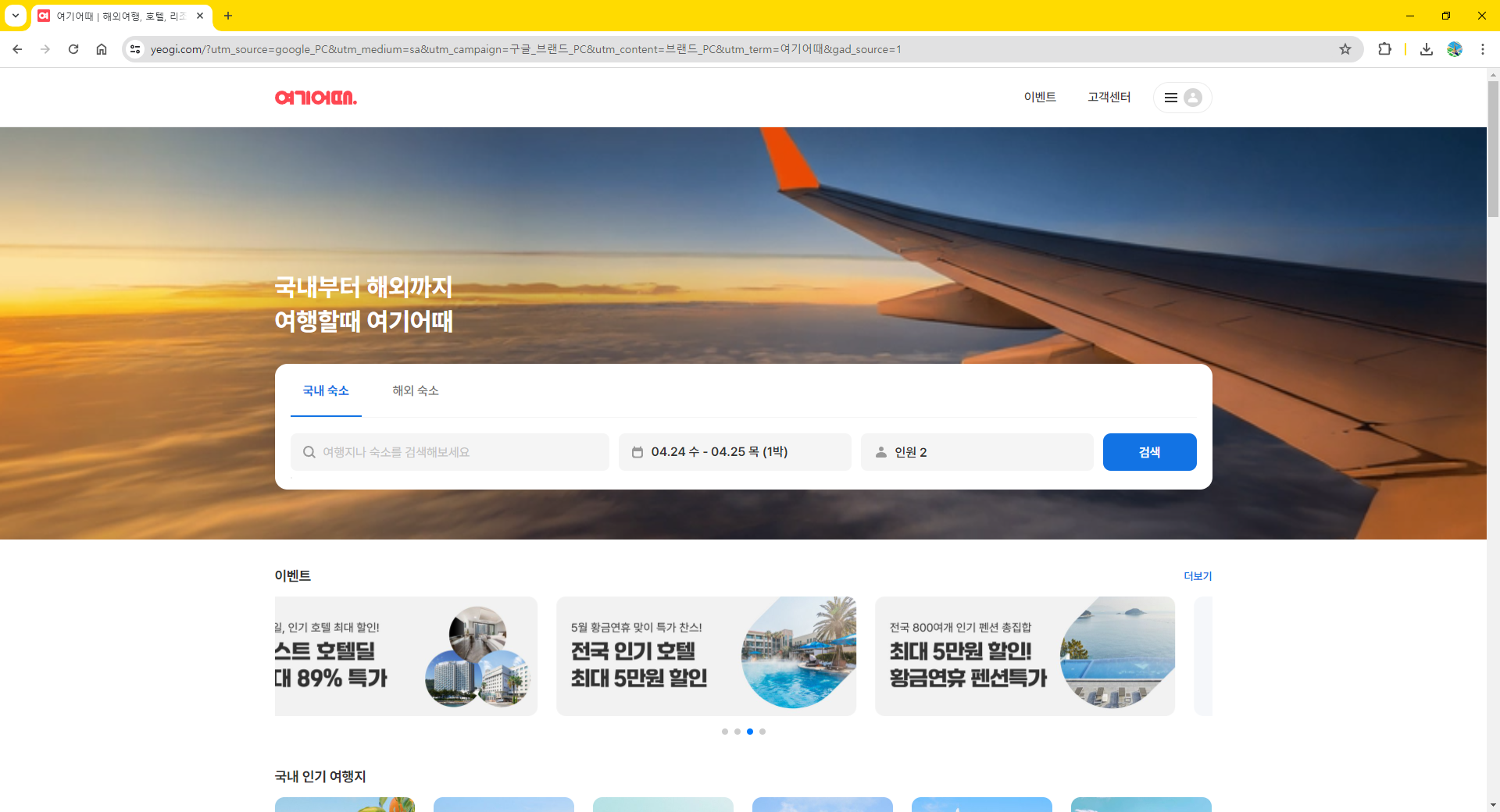 국내 숙소 예약 OTA - 여기어때 홈페이지