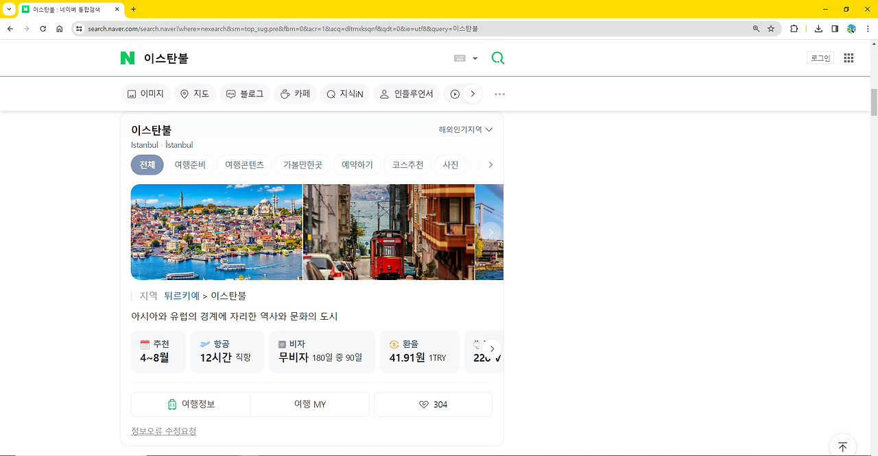네이버 여행정보에서 이스탄불로 검색한 결과