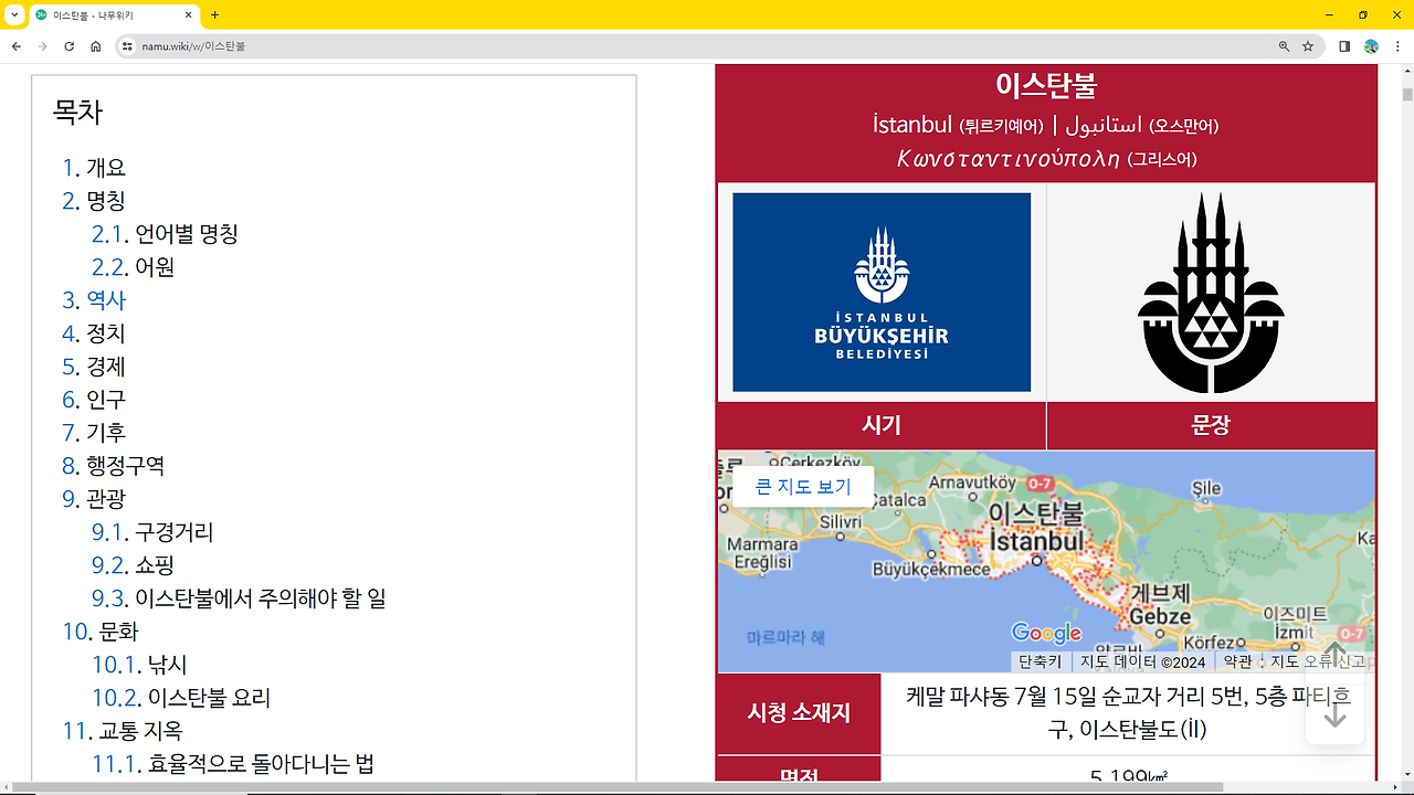 나무위키에서 이스탄불로 검색한 결과