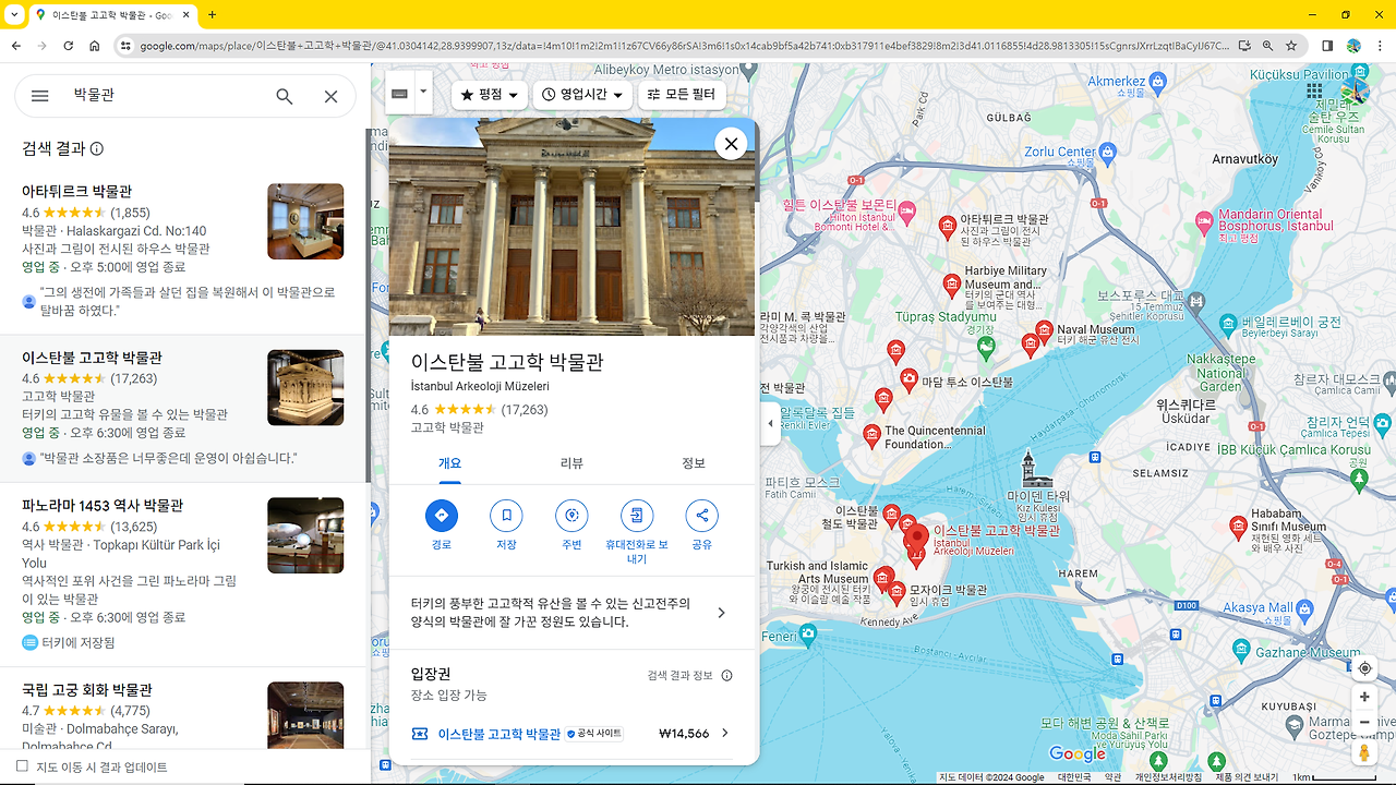 구글지도에서 이스탄불로 검색한 결과