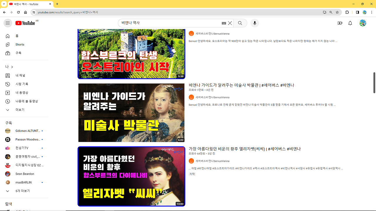 실제 여행에 앞서 여행을 계획하는 단계에서 방문하는 장소에 대한 사전 정보, 특히 역사적 배경이나 문화 등을 학습하는 것도 필요한데 이런 정보들도 유튜브에 많다. 여행하고자 하는 국가, 도시, 지역, 장소 등과 함께 역사, 문화 등의 키워드를 함께 사용하여 검색하면 현지의 여행 가이드나 국내의 전문가들이 제작한 관련 영상을 쉽게 발견할 수 있다. 예를 들어 ‘비엔나 역사’로 검색하면 비엔나와 합스부르크왕가에 대한 다양한 동영상들을 발견할 수 있다.