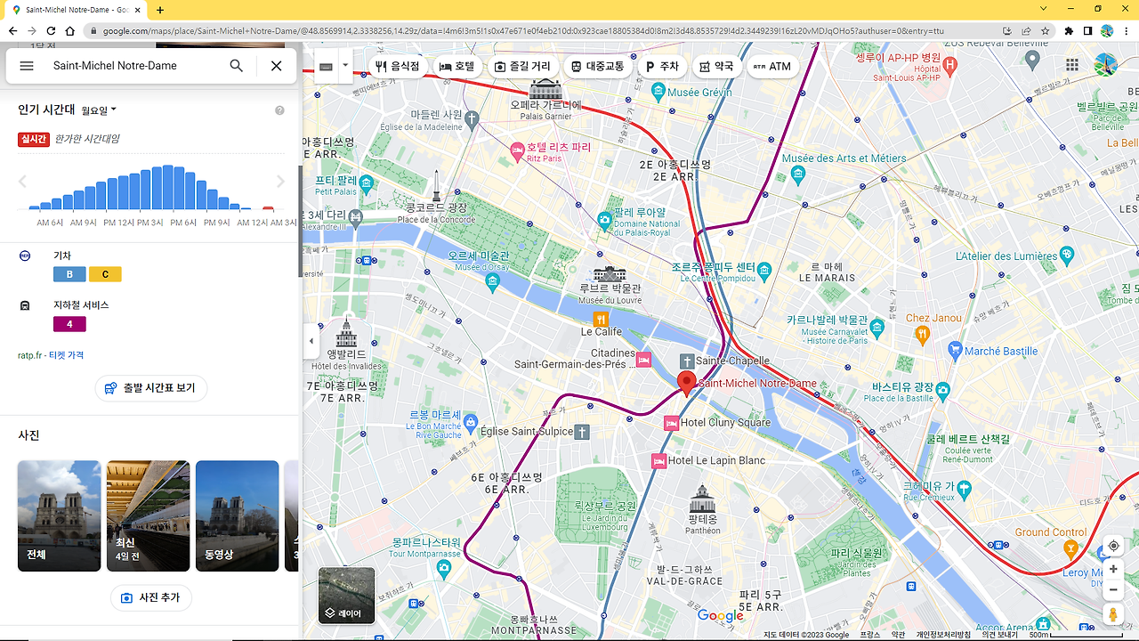 구글지도 데스크톱 버전에서 철도역(위)과 버스 승차장(아래)을 선택한 결과