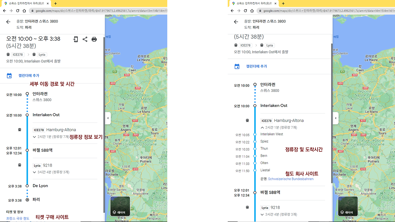 구글지도 데스크톱 버전의 대중교통 경로 탐색